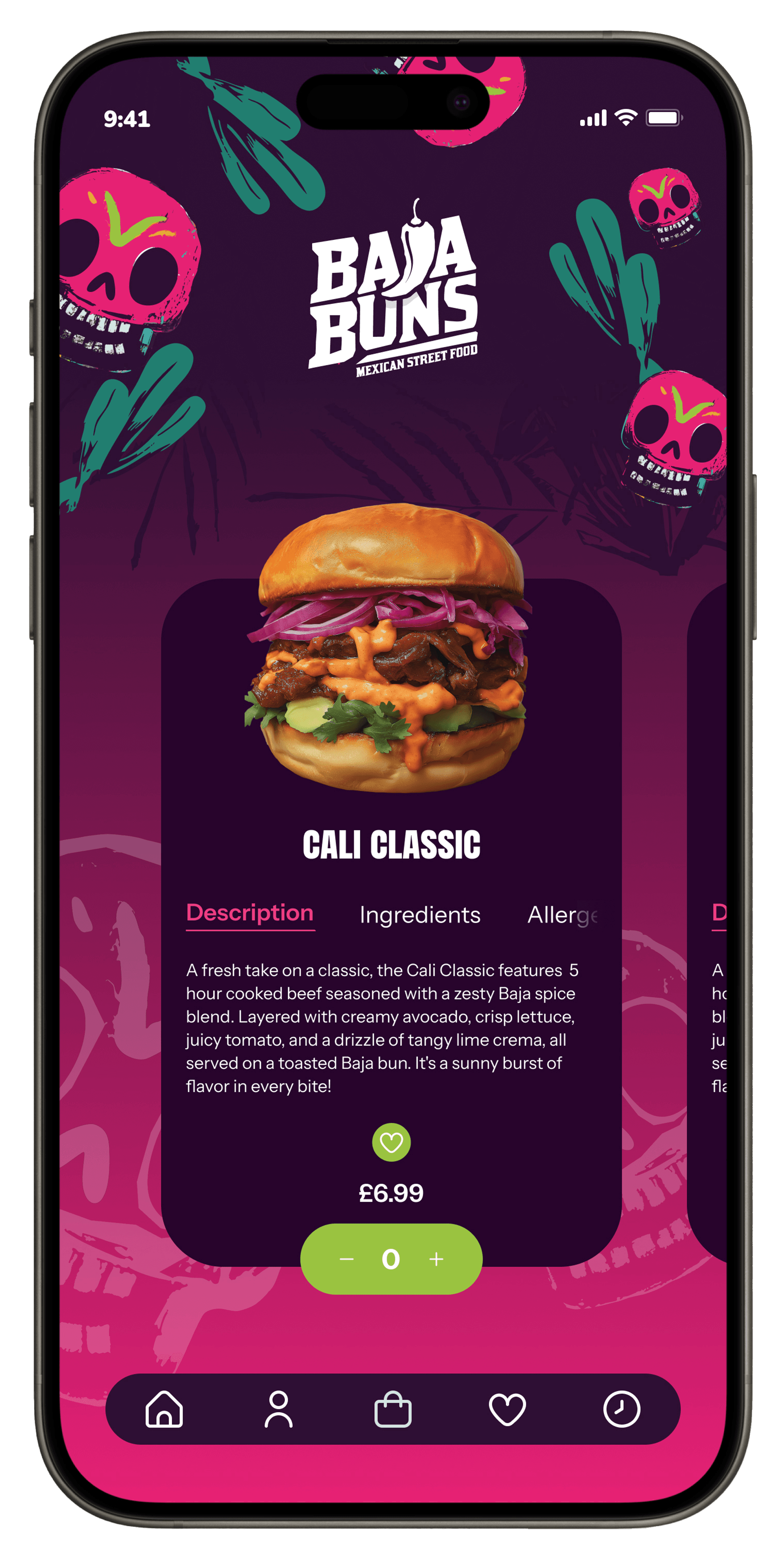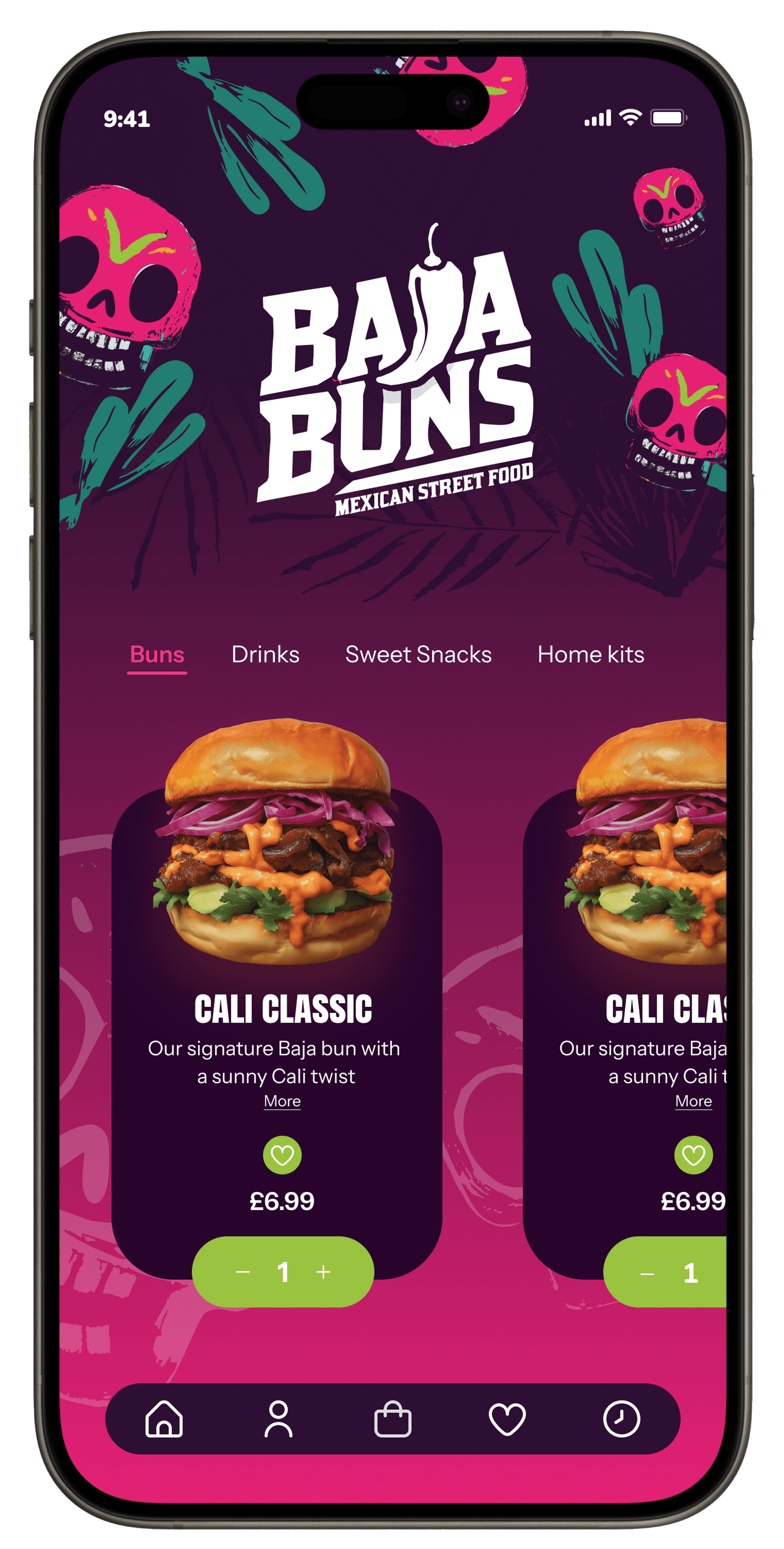 Baja Buns is a vibrant food truck concept blending California’s bold flavours with the energy of Mexican street food culture. Specialising in handcrafted sliders and buns, the brand identity was designed to be eye-catching, memorable, and versatile across physical and digital touchpoints — from truck livery and packaging to social media and UI elements.