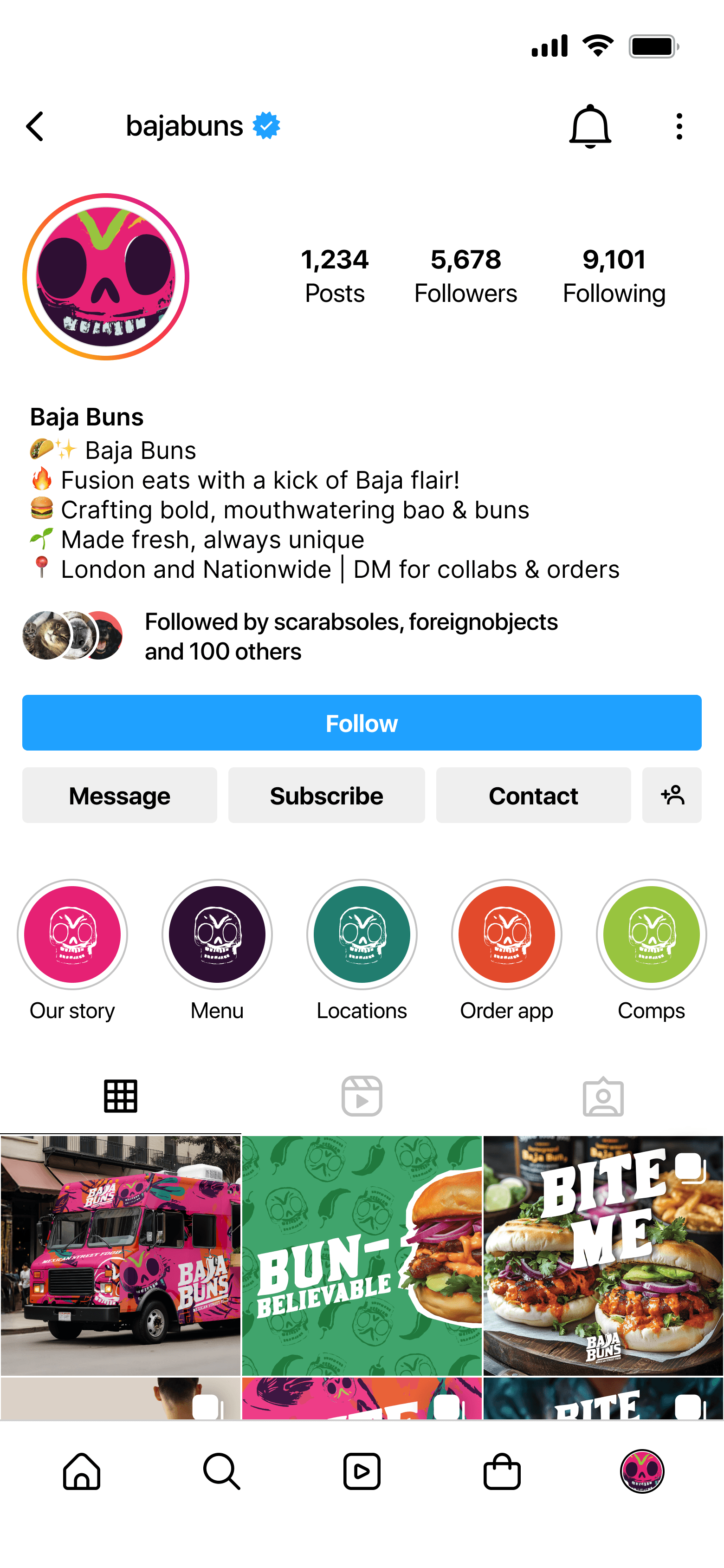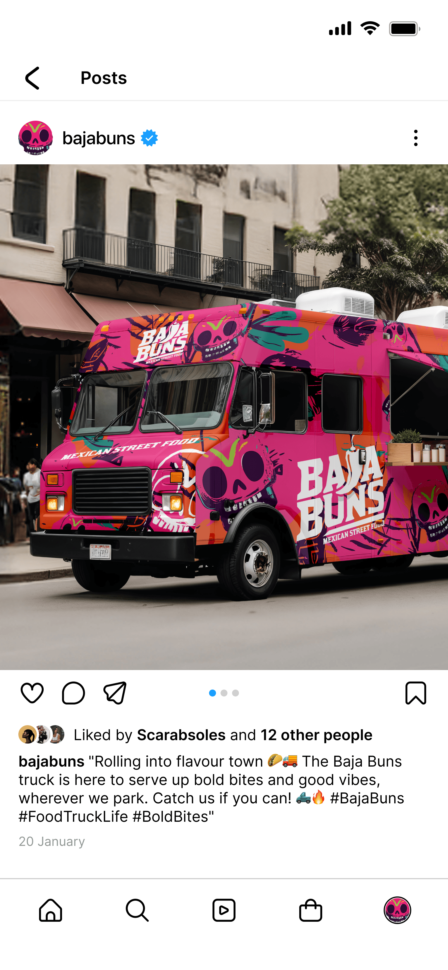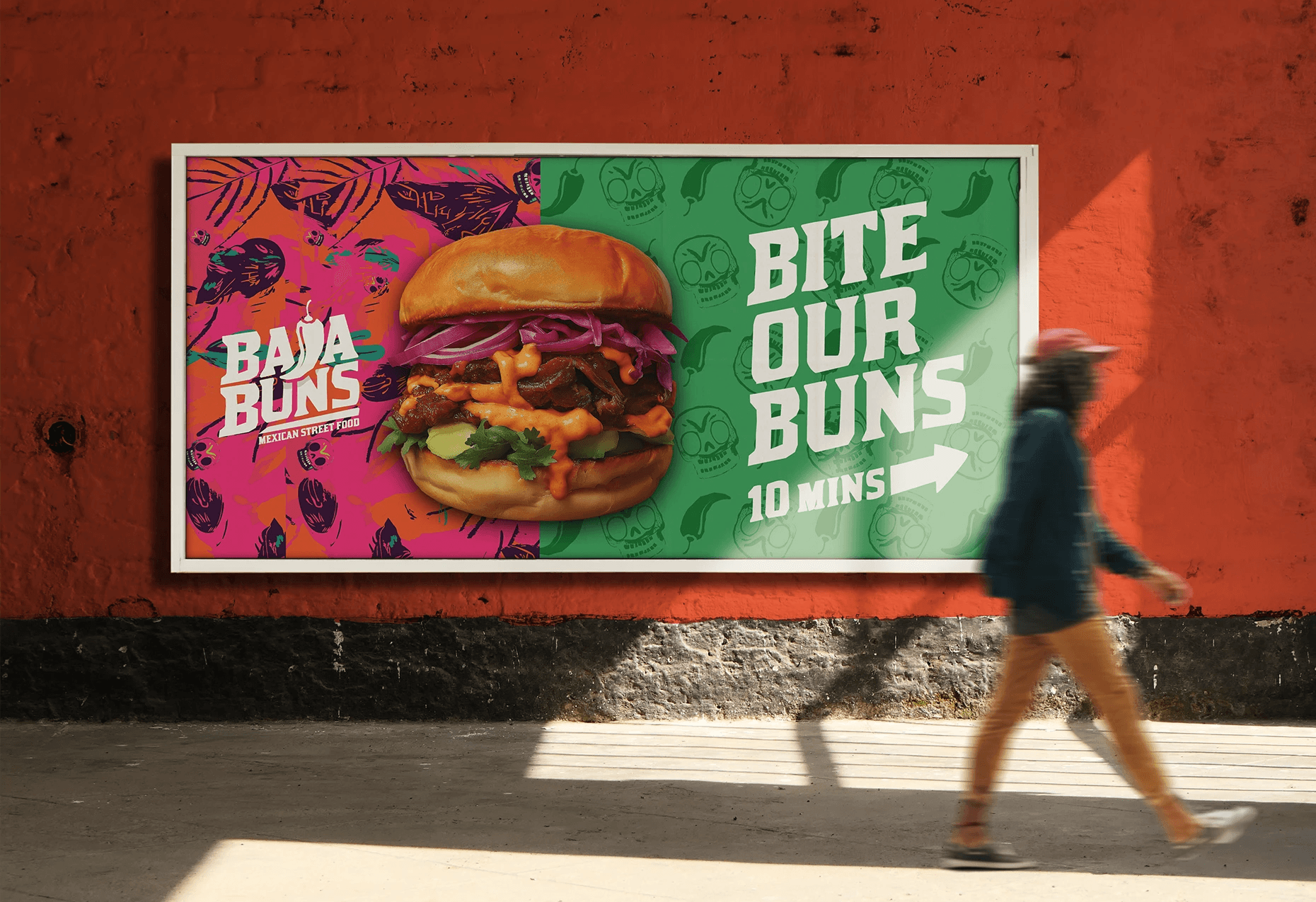 In a saturated street-food scene, standing out visually is vital. Baja Buns needed a brand that felt fresh, expressive, and recognisable at distance — especially on its mobile food truck and in fast-scroll social feeds.