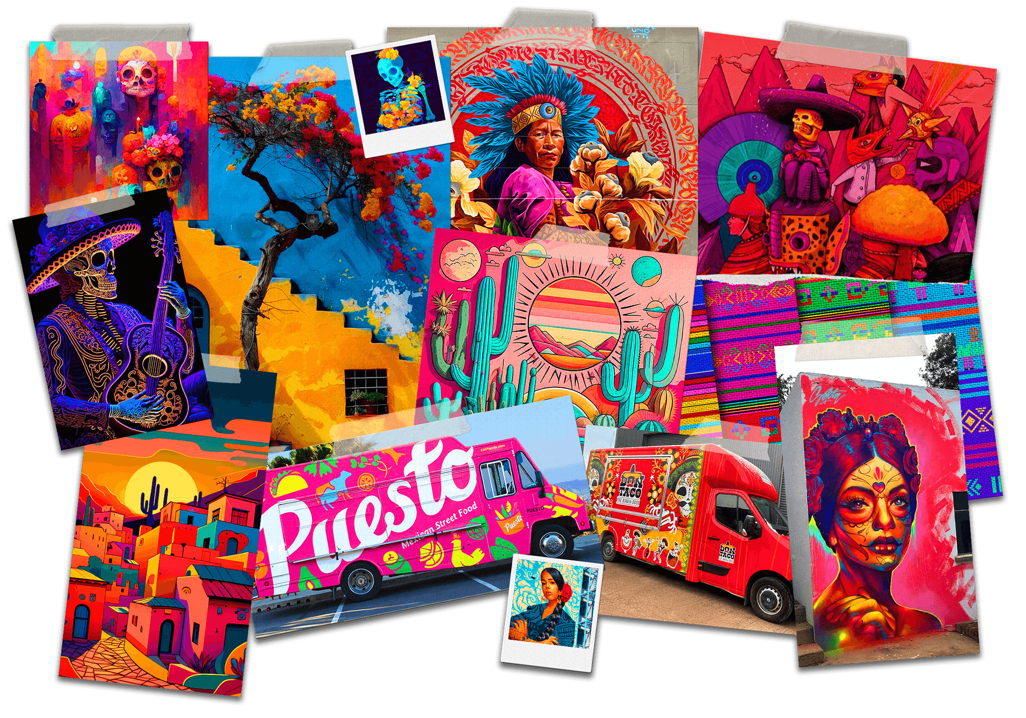 Custom hand-drawn motifs such as sugar skulls, chillis, and organic forms add layers of personality. These were applied to packaging, truck patterns, and social illustrations, creating a signature visual rhythm that feels personal and rooted in cultural references without cliché.