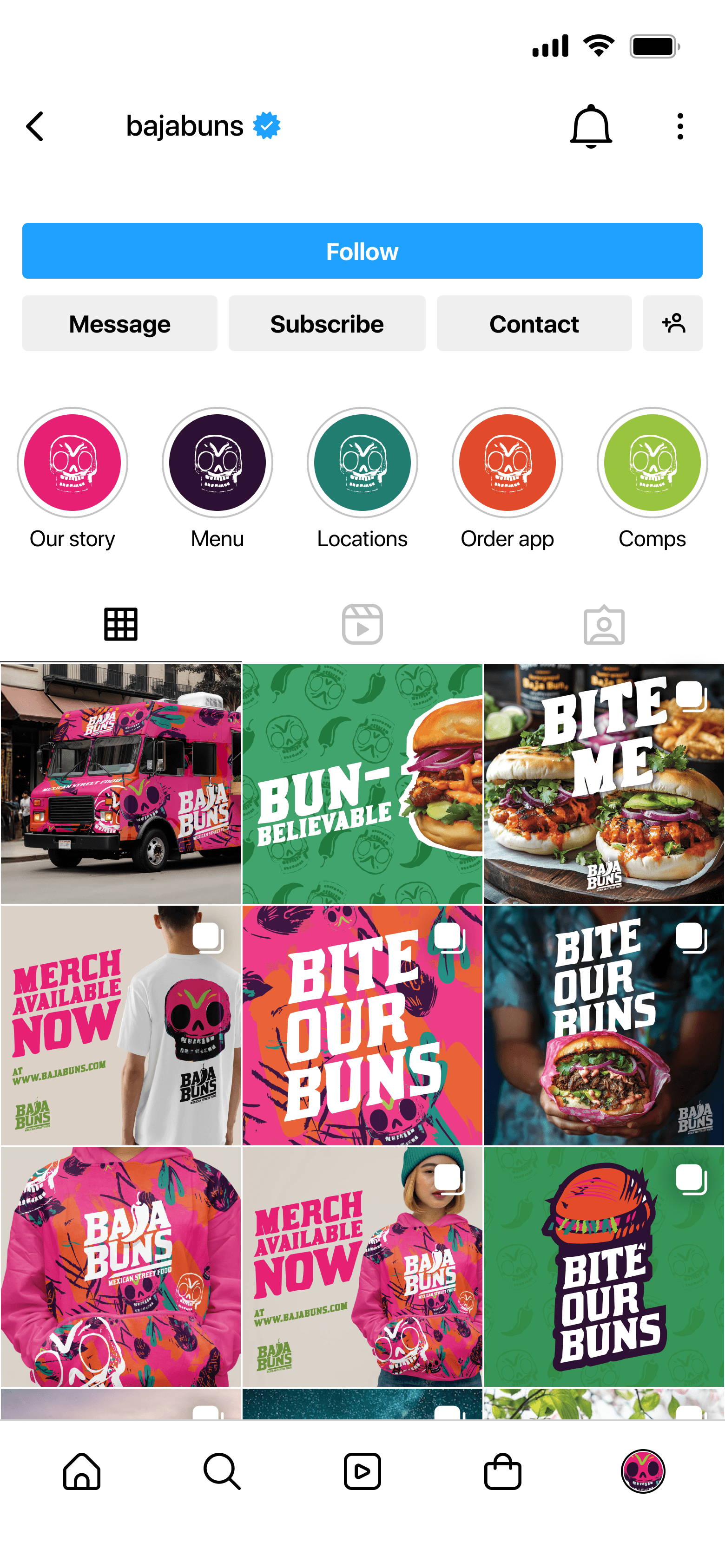 This positioning gave Baja Buns a unique voice in its category and a visual identity that supports everything from truck design and packaging to digital interaction.